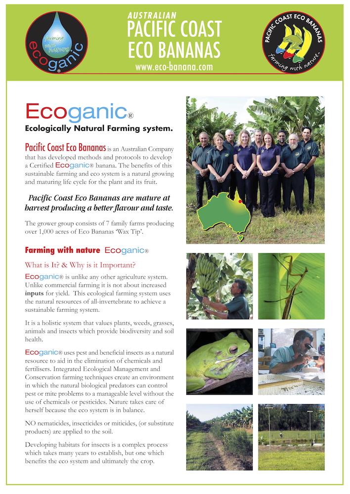 Eco Banana A4 size brochures produced and distributed at trade shows, visiting group farm tours and school farm tours etc.- 2013